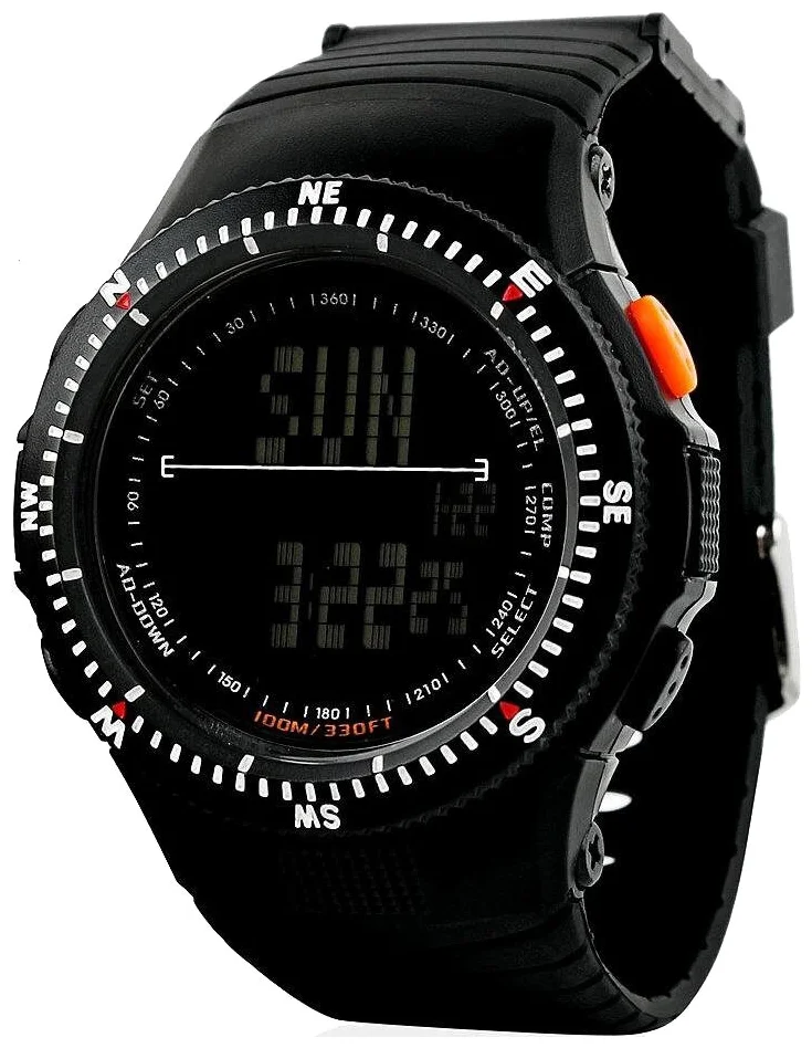 Материал корпуса: сталь, пластик, акрил Водостойкость: 5 АТМ Отображение даты: есть Будильник: есть Секундомер: есть Максимальная длина браслета: 24 см Диаметр циферблата: 50 мм Высота циферблата: 14 мм Ширина ремешка: 20 мм Вес без упаковки: 53 г Пол: мужские Все часы SKMEI поставляются в брендированном металлическом боксе, который служит не только надежной защитой при транспортировке, но и прекрасной подарочной упаковкой.